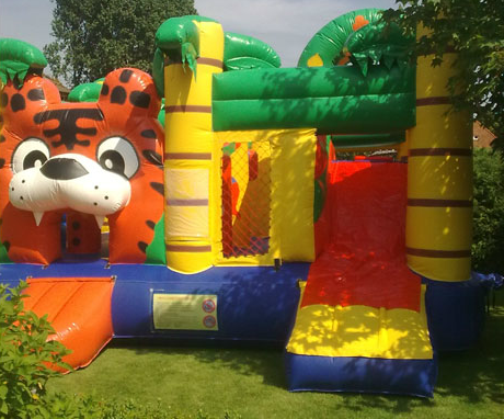 Welkom in de wilde Jungle, waar ons Jungle-springkasteel wacht met een imposante tijger en een lange glijbaan voor ultiem speelplezier! Ontdek avontuur te midden van kleurrijke obstakels en beleef een jungle-ervaring als nooit tevoren.